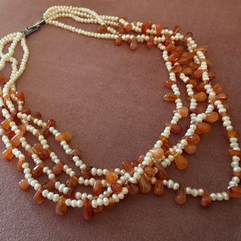 Perlekjede, perler, vintage, retro, kjede, halskjede, halssmykke, perle, korall, korallkjede, smykke, perlesmykke,