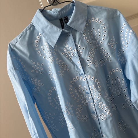 Pent brukt topp/bluse i nydelig blåfarge, størrelse S