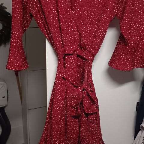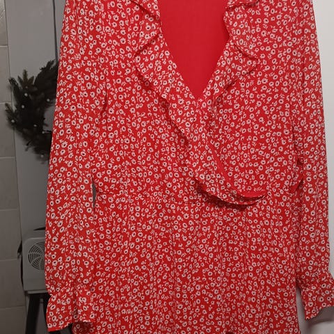 AMISU bluse i størrelse S, laget av polyester. Blusen har en rød farge med mønster og er designet for kvinner.