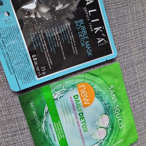 Ansiktsmasker for fuktighet og fotmasker for peeling. 15kr/stk. 60 for alle 5.