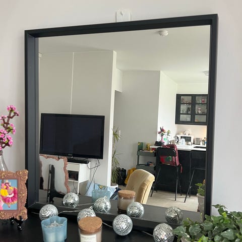 Veggspeil med hvit ramme. Passer til ulike rom og bruksområder.
