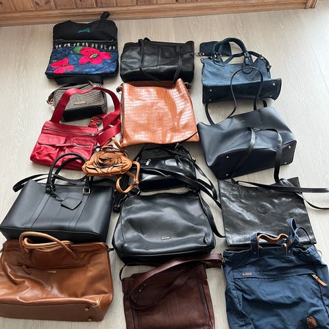 Selger disse weekendbagene og veskene. To av disse har aldri vært brukt og beskyttelse på lås er fortsatt på.