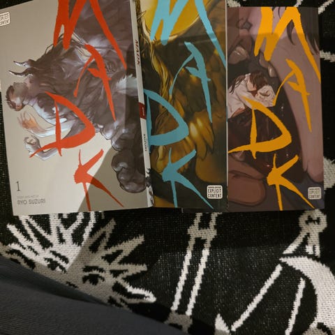 Natsuki Takaya Tsubasa: Those with Wings manga, volum 1 til 3. Serien er skrevet og illustrert av Natsuki Takaya og består av tre bind. Bøkene er på engelsk og inneholder historien om Tsubasa og dens karakterer. Selges samlet for 200kr