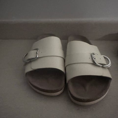 Heklede sandaler/ slippers med korksåle. Kremhvit med friske farger/ blomster. Boho style. Det er str 39 europeisk størrelse.