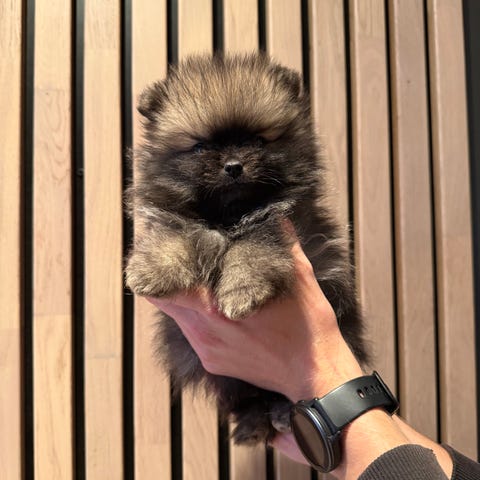 Far er renraset pomeranian med stamtavle i NKK, farge orange sobel.