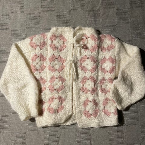 Strikket/ heklet i mohair blanding.