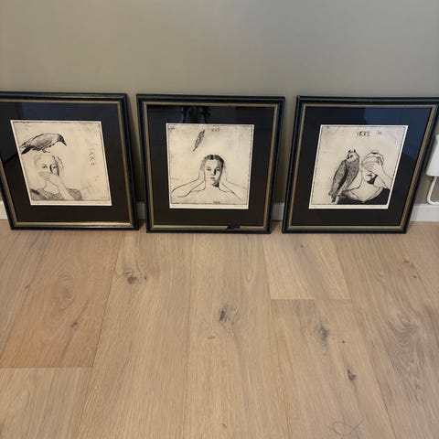Nydelige litografier av Jan Kristofori. Signert, nummerert og innrammet bak glass. Til info er det noe slitasje i rammene, grunnet rammenes alder. Rammen på litografi 4 har fått mer medfart enn de andre.