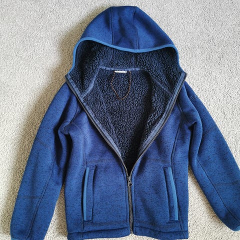 Fin fleece jakke med hette og glidelås. Str.8 år /