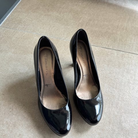 Sorte pensko med lave hæler. Selges kun fordi jeg ikke bruker dem så ofte / har mange lignende par.