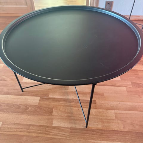 Stor sofabord med oppbevaring til pledd eller leker. Lite merker på bordplate men kan nales ved behov.