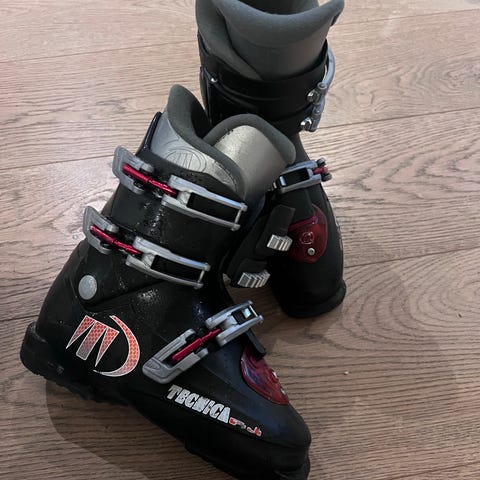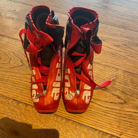Pent brukte ski og støvler fra salmon. Flere års bruk igjen. Støvlene er små i størrelsen, passer 38.