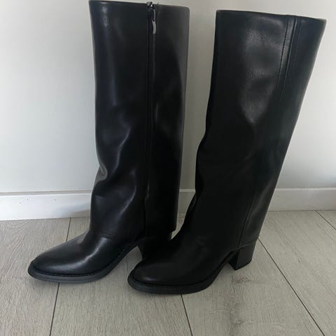 Svarte vinterstøvler med glidelås på siden av støvelen.