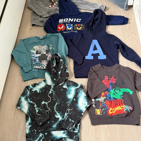 hettegenser i blå farge, størrelse 98-104, designet for unisex barn. Genseren har hette og er laget i materiale som gir komfort og varme. Passer for daglig bruk og utendørsaktiviteter.