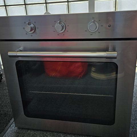 Ovnen er defekt. Sikringen går når den skrus på. En eller annen kortslutning. Sannsynligvis enkelt å fikse for den som kan.