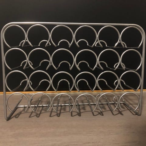 Mulig å henge opp på oppheng til Ikea sitt system, eller stå på benk.