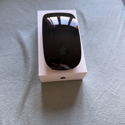 Apple Magic Mouse 2 trådløs mus i hvit farge. Musen har en minimalistisk design med berøringsflate og er kompatibel med Mac-enheter. Den bruker oppladbart batteri og kobles til via Bluetooth.