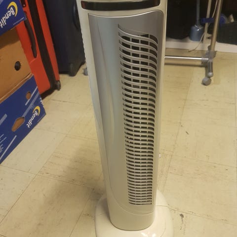 Vifte med timer. Utstyrt med justerbare temperatur- og vifteinnstillinger.