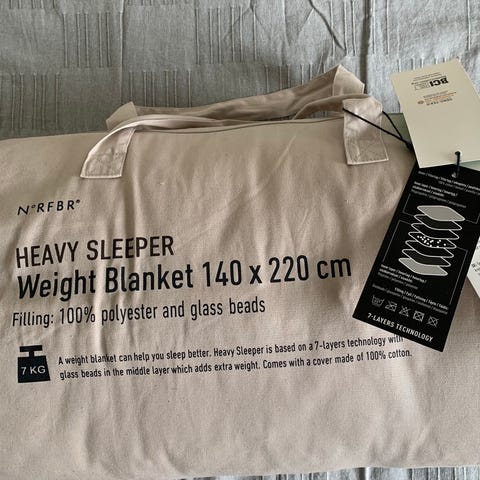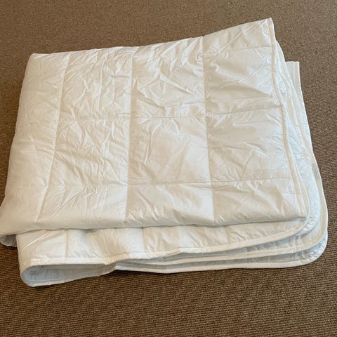 Vektdyne 5 kg. Fra Cura Of Sweden. Ble for lett for meg, da jeg byttet over til en tyngre. Mål: 150 x 200 cm.
