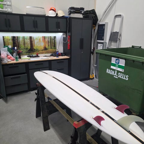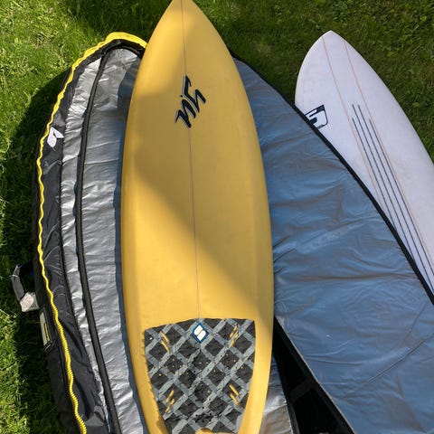 Type: Shortboard – med single-concave underside og swallow tail, designet for fart, stabil paddling og responsive svinger.