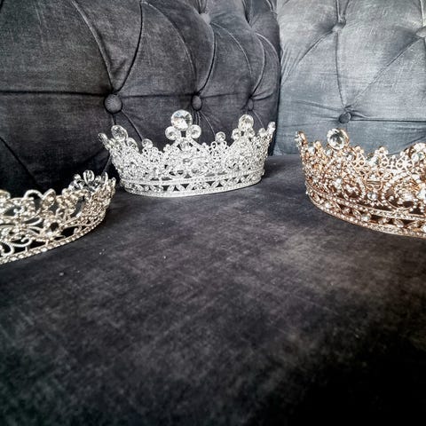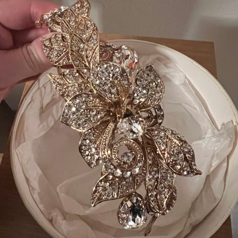 Elegant gull tiara/diadem med glitrende rhinestones.