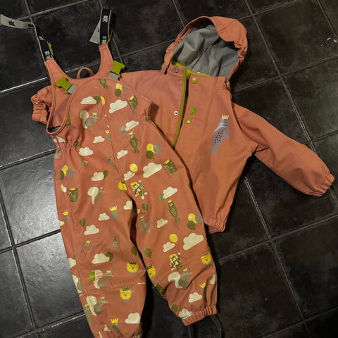Rosa Kattnakken regnjakke størrelse 86 selges. Ingen slitasje eller hull, kun kosmetisk smått skittent (se bilder). Selger også regnbukse i samme størrelse.