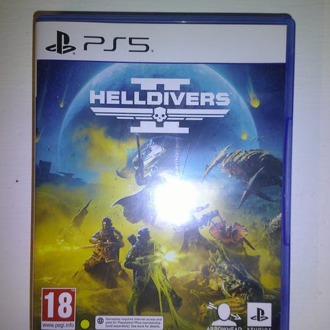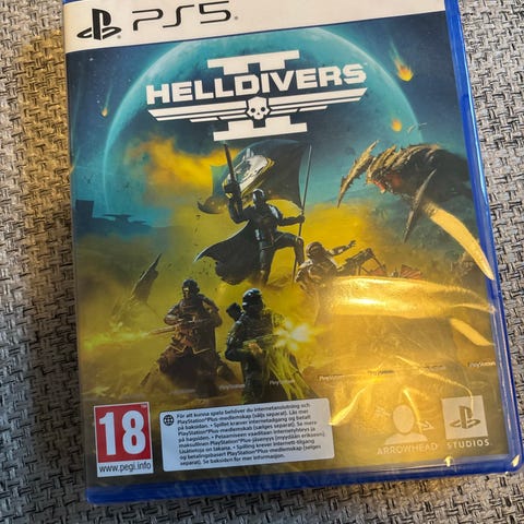 Helldivers 2 spill for PS5. Spillet har aldersgrense 18 år og inkluderer fysisk spillplate i original emballasje.