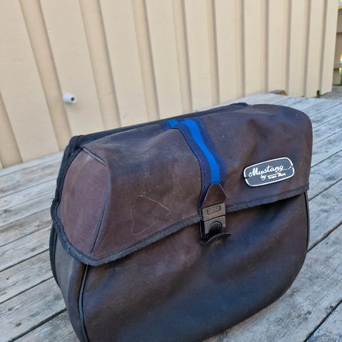 Godt brukt bagasjeboks for scooter eller MC. Synlig brukt med bruksmerker og noe falmet overflate. Ellers komplett med nøkkel og festeanordning. Se bilder.