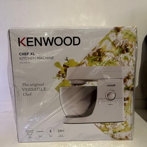 God maskin selges da vi har to. Følger med visp, eltekrok, k-krok, blender og lokk til bollen. Bollen rommer 6,7 liter. 1200 watt. Blenderen har et hakk i lokk og på kanten etter en lei dunk. Noen merker på eltekroken, men har ingenting å si for bruken.