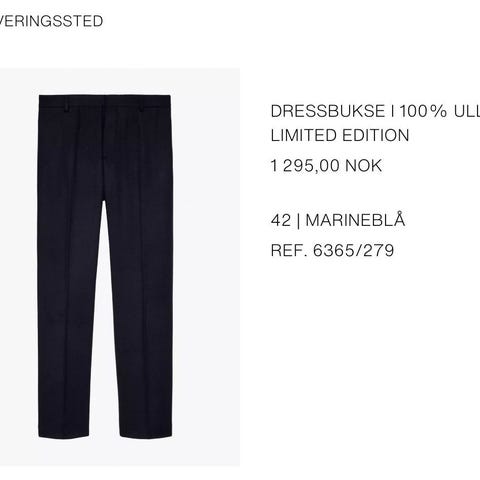 NY * Dressbukse i ullmix fra Zara Man str. 44/46 ( S )