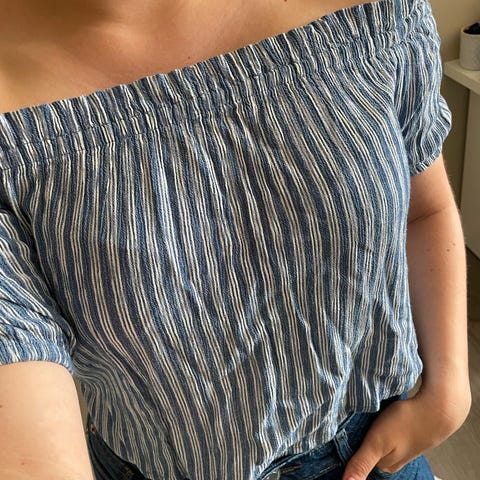Bershka stroppløs topp i størrelse XS, fargen hvit, laget av viskose. Toppen har en enkel og minimalistisk design, egnet for ulike anledninger og kan kombineres med flere typer antrekk.