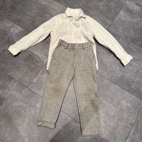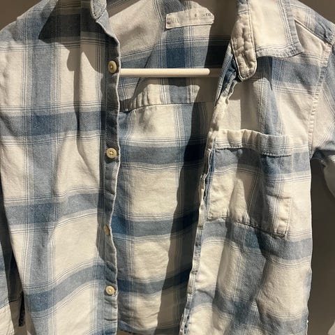 Denne rakk vi aldri å bruke før den ble for liten. Kan brukes som skjorte, eller som jakke i sommerhalvåret. Fra Zara. 78% bomull, resten polyester.