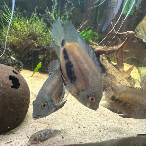 Grunnet ivrig lek i kar har vi gått flere kull med fisk. Ca 12 ciklider søker nytt kar og hjem. 🙂