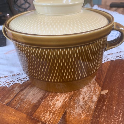 Pent brukt om i det hele tatt. 17cm Ø 10cm høy inkl lokk