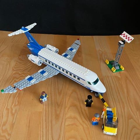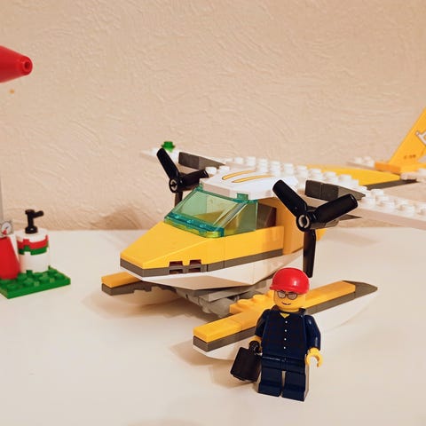 Liten, kul Lego fly. Figur, tilbehør og instruksjonshefte (finnes på nett) mangler, men det stopper vel ingen barn. Selve flyet er komplett. Kan også hentes på Bøler, for de som vil spare frakt.