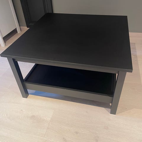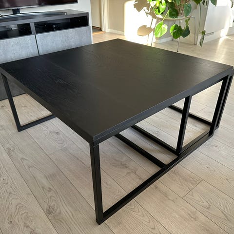 Salongbord med 2 skuffer. 1x1 meter. Malt dempet sort. Ser veldig fint ut. Tror det er fra Englesson.