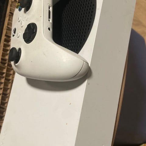 Xbox Series S konsoll i hvit farge. Konsollen har en moderne design og leveres med en trådløs kontroller kan gå ned til 1300kr ved rask kjøp
