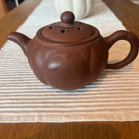 Liten tekanne 4-5 dl med vevd bambus(?) rundt og pandamønster