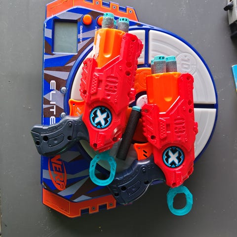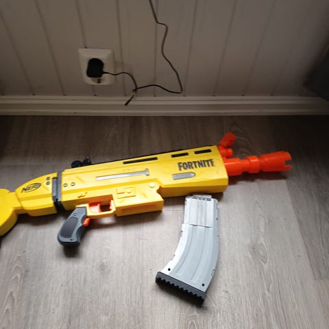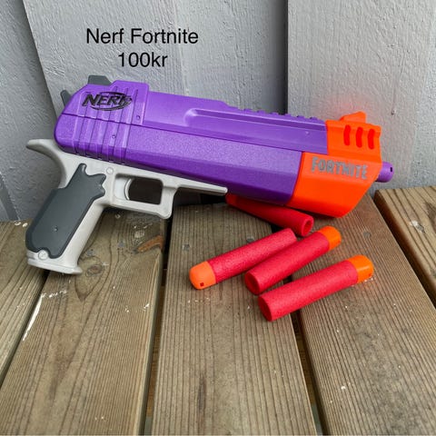Klassisk modell fra Nerf, gis bort fordi ingen her hjemme bruker den lenger. Perfekt for barn mellom 8-12 år!