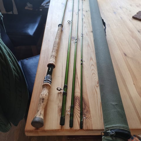 Vurderes solgt da jeg har for mange andre prosjekter på gang. Stangen har aldri rørt vannet. Mangler original tube men selges med en Orvis tube med plass til stang og snelle. Følger også med en klasse 8 sjøørretline fra SA, ubetydelig brukt. Bud mottas