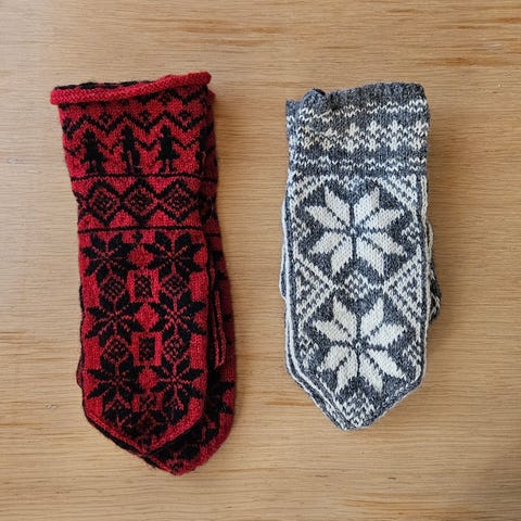 2 par votter selges samlet. Vottene passer en normal, liten kvinnehånd.