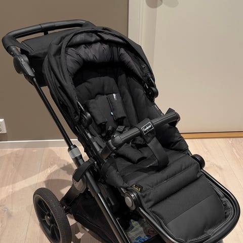 Stokke tilbehør til barnevogn. Pent brukt ståbrett som enkelt brukes av søsken.