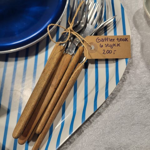 Teak gafler i god stand, 6 stk