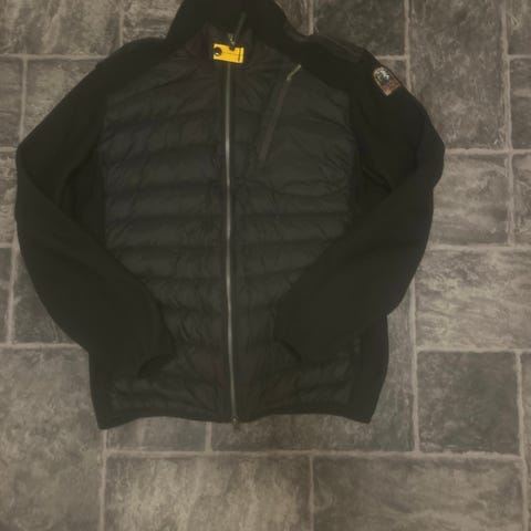 Parajumpers Jakke i størrelse L, svart farge og laget av dun. Jakken er designet for utendørs bruk og gir isolasjon og varme.