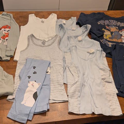 Genser rød. Namit str 110, nattkjole ca str 116..pysj bukse flanel str 6 til 8 år. 75 kr tilsammen