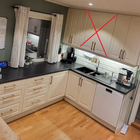 1 front til overskap over kjøleskap
