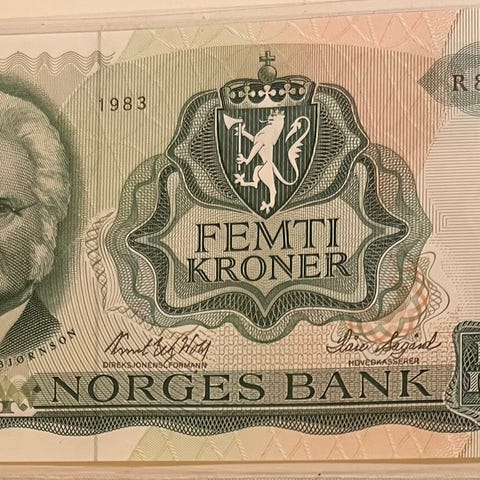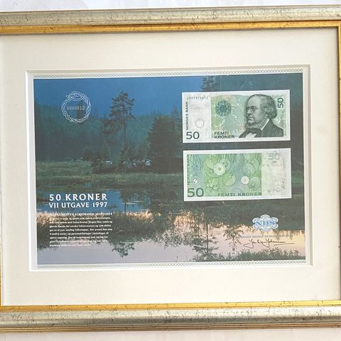 Norges Bank 50 Kroner Innrammet Samleobjekt