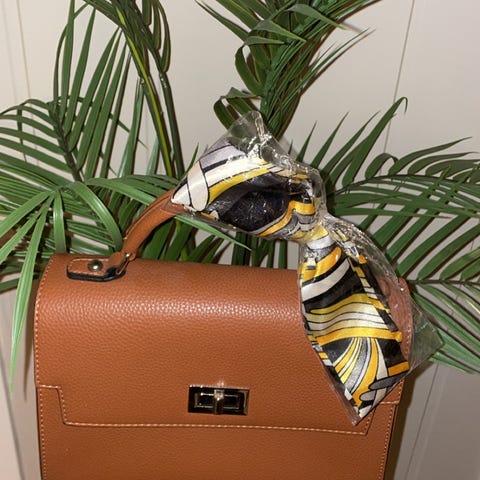 Nydelig veske fra Decadent Copenhagen. Med silkeskjerf. Lite/pent brukt. Cognac farge. Romslig.