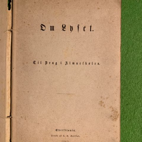 Boken er litt falmet utenpå, men ellers i god stand.