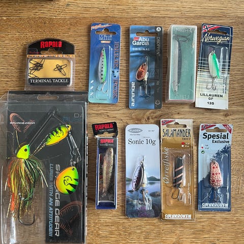 Handlet litt for mange..selger derfor Nautil saltwater line 600 m 9.0 kilo 0.35 mm og J-Braid x 8 300 m 56 kilo 0.51 mm..fra laks til kveite