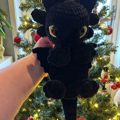 Håndlaget snuggler drage bamse, inspirert av den hvite dragen i Dragetreneren😍🩵